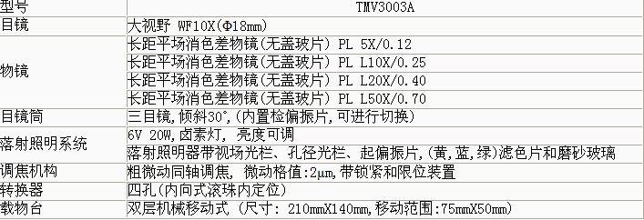 主要技術(shù)指標(biāo):適用于對不透明物體的進行顯微觀察