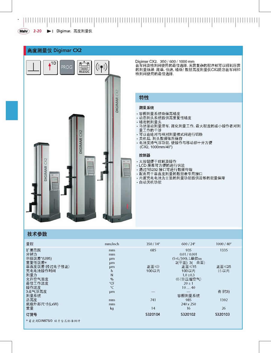 Digimar CX2數(shù)顯高度儀技術(shù)參數(shù)