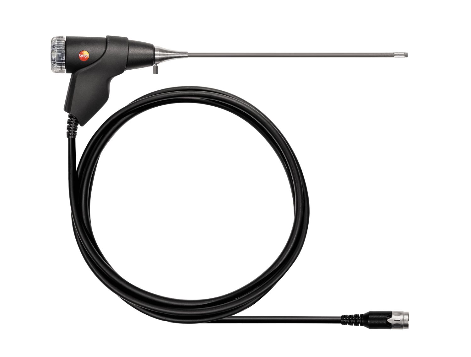 模塊化煙氣探頭帶有長度為 180 mm 的探針套管、圓錐體、耐溫500 °C 的集成式熱電偶以及快換卡合系統(tǒng)